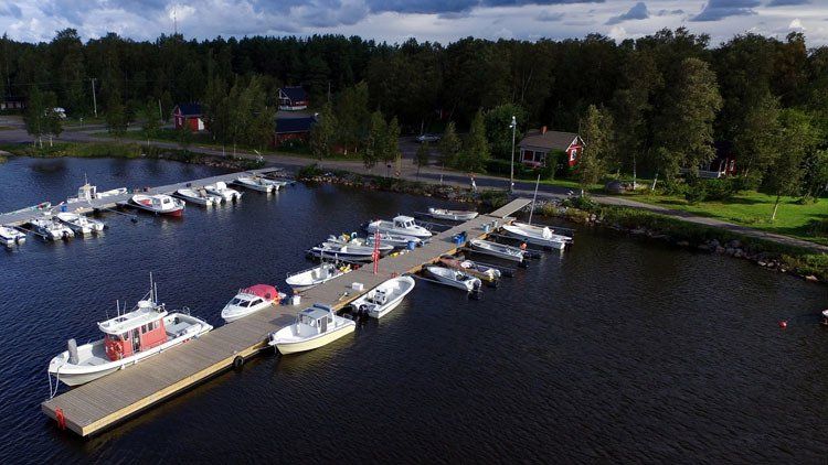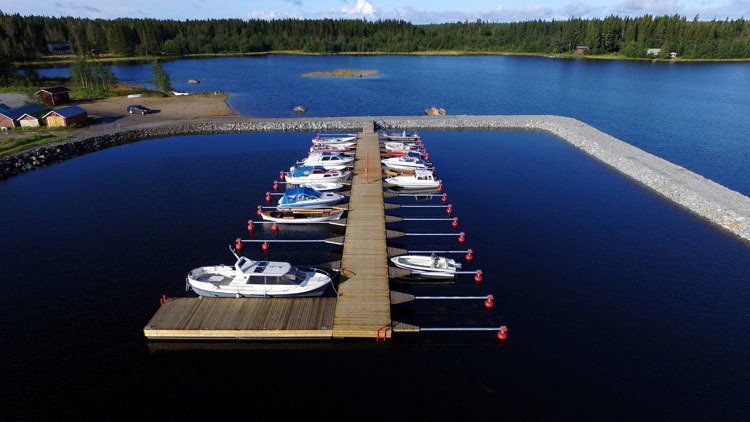 Meiltä saat venelaitureihin myös venepuomit, poijut, sähkö/vesi/valotolpat, veneenkiinnitystarvikkeet ja pelastusvälineet.